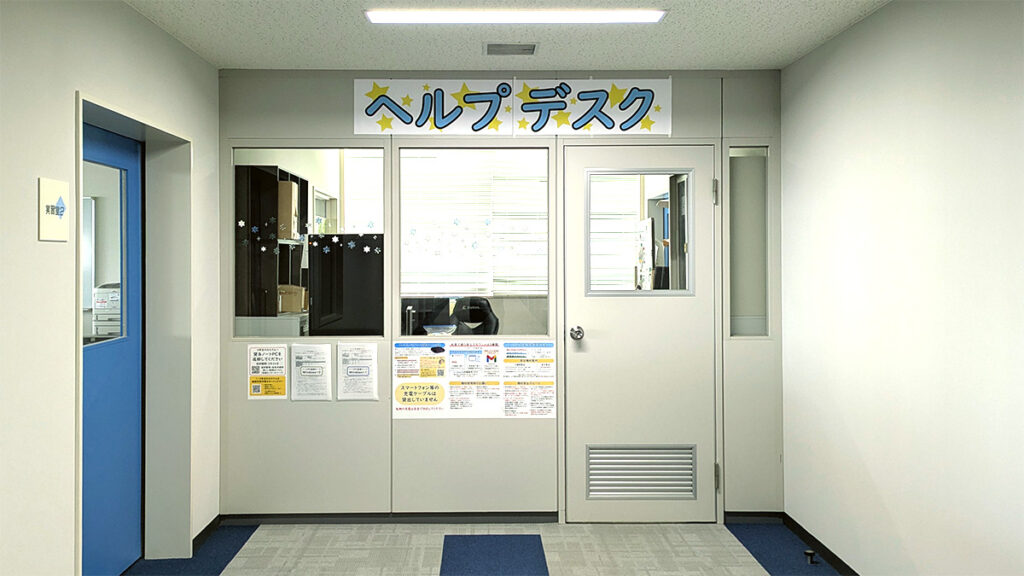 - 実習室でトラブルが発生した場合は、ヘルプデスク又は情報システム管理室に相談してください。